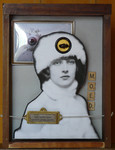 2011oud kistje uit donkere kamer, sigarettendoosjes, foto's afgedekt met glas