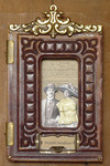 2011oud kistje met foto en anatomische afbeeldingen afgedekt met plexiglas