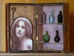 2011oud kistje, foto, flesjes afgedekt met plexiglas