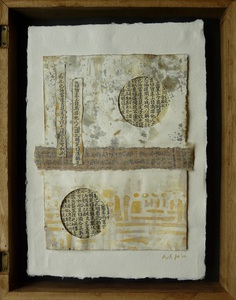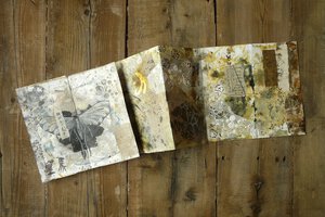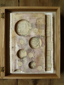 Met papier, stof, verf, inkt, oude documenten en foto's ontstaan kleine kunstwerkjes en portretten, soms 2-dimensionaal, soms 3-dimensionaal en het liefst met een onverwachte wijze van inlijsten.